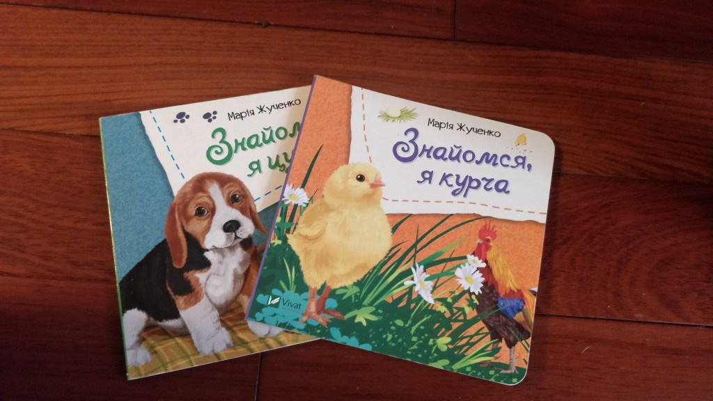 Другий аспект, на який я зважаю, це так звана “монтесорність”)) Нам дуже подобається підхід Марії Монтесорі, а в стосунку до книжок від полягає у виборі, знову ж таки, реалістичних зображень, включно з книжками про тварин та на інші теми. В мене є не зовсім монтесорні книжки, куплені до Рути, є подаровані нам книжки, і, певна річ, ми не слідкуємо за цим аж так суворо, але я все одно тримаю це в голові, коли купую щось нове.