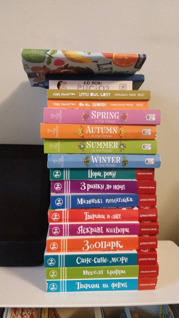 Вона має книжки й англійською, й українською. Я стараюся якомога більше читати їй українською, а англійською заповнювати пробіли.